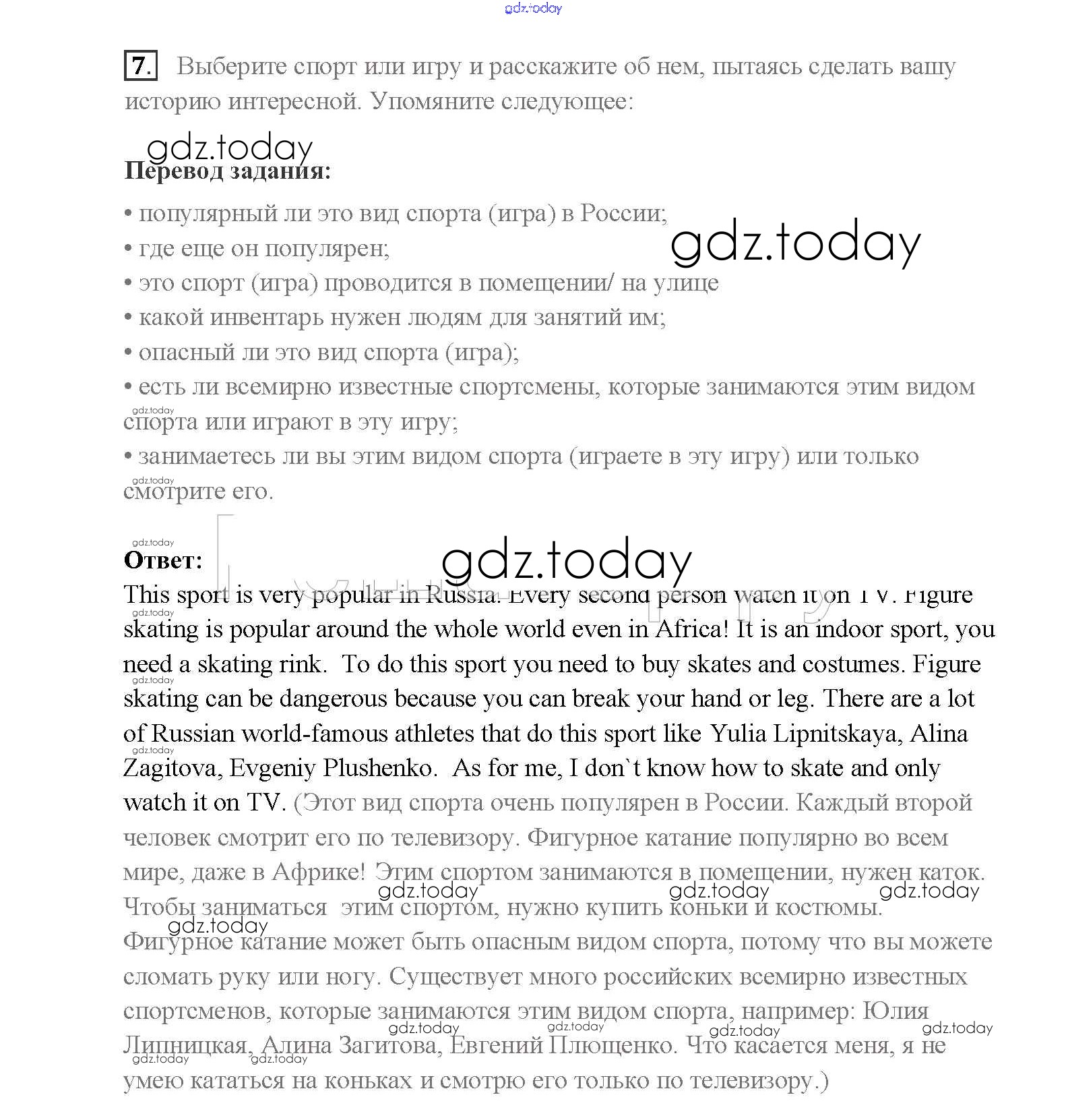 На страницах сайта gdz.today вы найдете учебный и вспомогательный материал, направленный на улучшения знаний школьной программы. ГДЗ - онлайн мир знаний Step 8 Решение к Unit 1. Sport and outdoor activities 7 Учебнику по Английскому языку для 8 класса Афанасьева, Михеева Дрофа Rainbow 2016