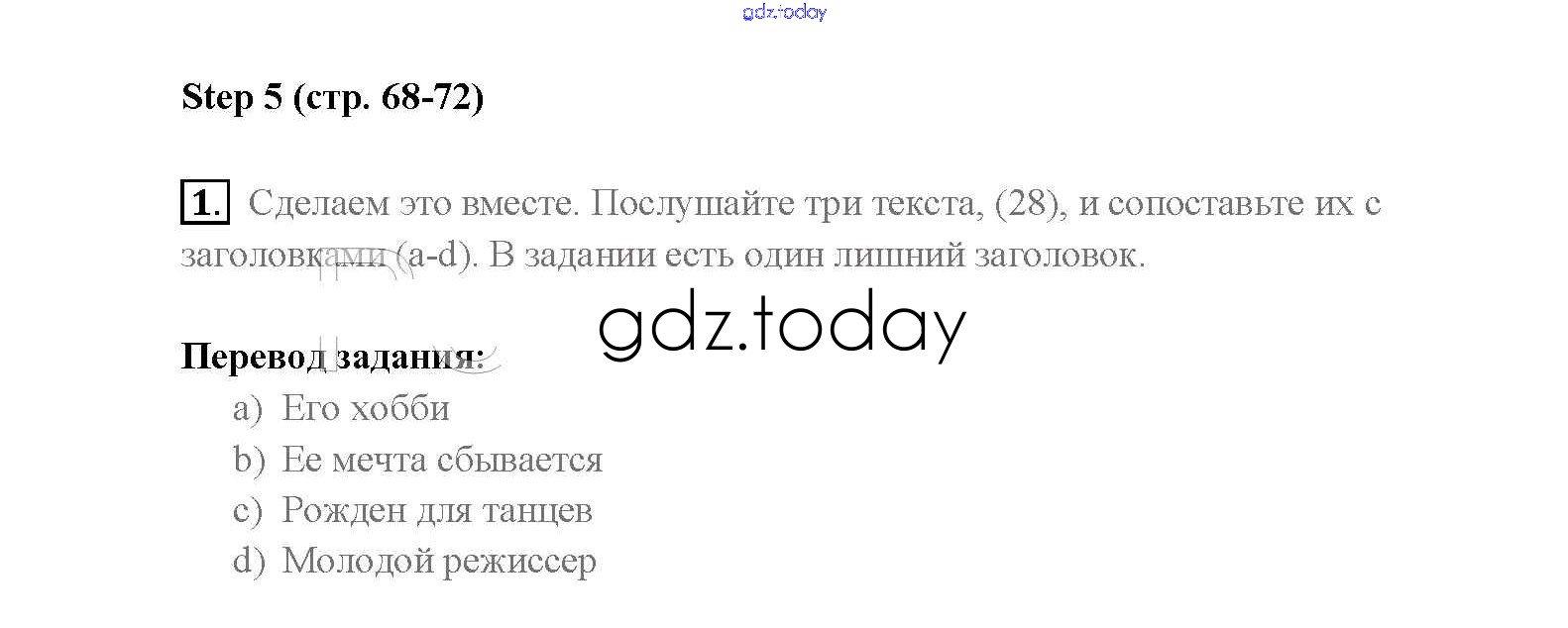 На страницах сайта gdz.today вы найдете учебный и вспомогательный материал, направленный на улучшения знаний школьной программы. ГДЗ - онлайн мир знаний Step 5 Решение к Unit 2. Performing arts: theatre 1 Учебнику по Английскому языку для 8 класса Афанасьева, Михеева Дрофа Rainbow 2016