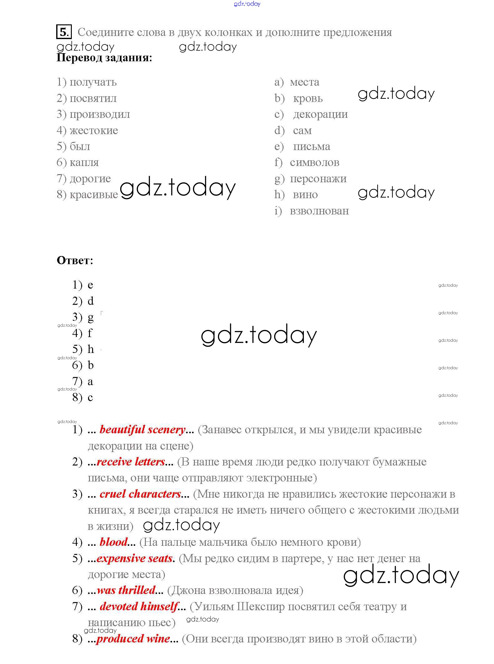 На страницах сайта gdz.today вы найдете учебный и вспомогательный материал, направленный на улучшения знаний школьной программы. ГДЗ - онлайн мир знаний Step 5 Решение к Unit 2. Performing arts: theatre 5 Учебнику по Английскому языку для 8 класса Афанасьева, Михеева Дрофа Rainbow 2016