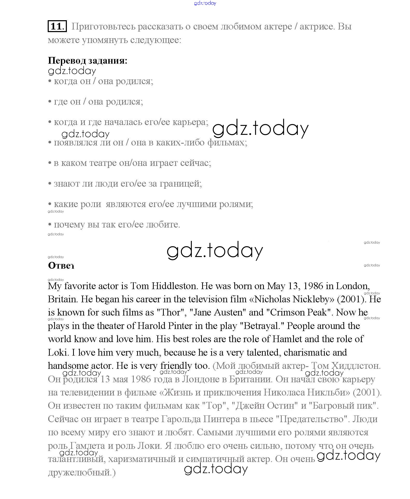 Ответы к Step 8 Решение к Unit 2. Performing arts: theatre 11 Учебнику по Английскому языку для 8 класса Афанасьева, Михеева Дрофа Rainbow 2016