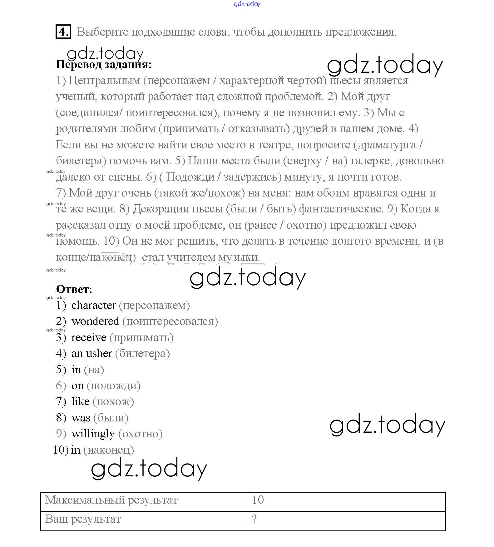 Ответы к Step 10 Решение к Unit 2. Performing arts: theatre 4 Учебнику по Английскому языку для 8 класса Афанасьева, Михеева Дрофа Rainbow 2016