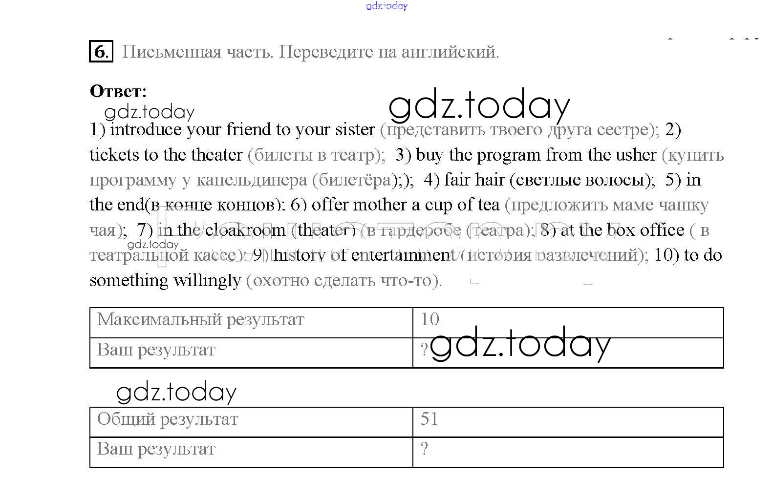 Ответы к Step 10 Решение к Unit 2. Performing arts: theatre 6 Учебнику по Английскому языку для 8 класса Афанасьева, Михеева Дрофа Rainbow 2016