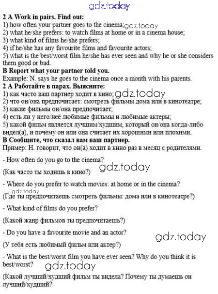 На страницах сайта gdz.today вы найдете учебный и вспомогательный материал, направленный на улучшения знаний школьной программы. ГДЗ - онлайн мир знаний Step 1 Решение к Unit 3. Performing arts: cinema 2 Учебнику по Английскому языку для 8 класса Афанасьева, Михеева Дрофа Rainbow 2016
