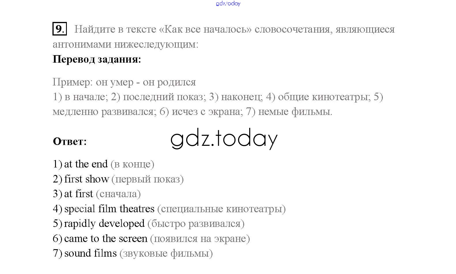 На страницах сайта gdz.today вы найдете учебный и вспомогательный материал, направленный на улучшения знаний школьной программы. ГДЗ - онлайн мир знаний Step 1 Решение к Unit 3. Performing arts: cinema 9 Учебнику по Английскому языку для 8 класса Афанасьева, Михеева Дрофа Rainbow 2016
