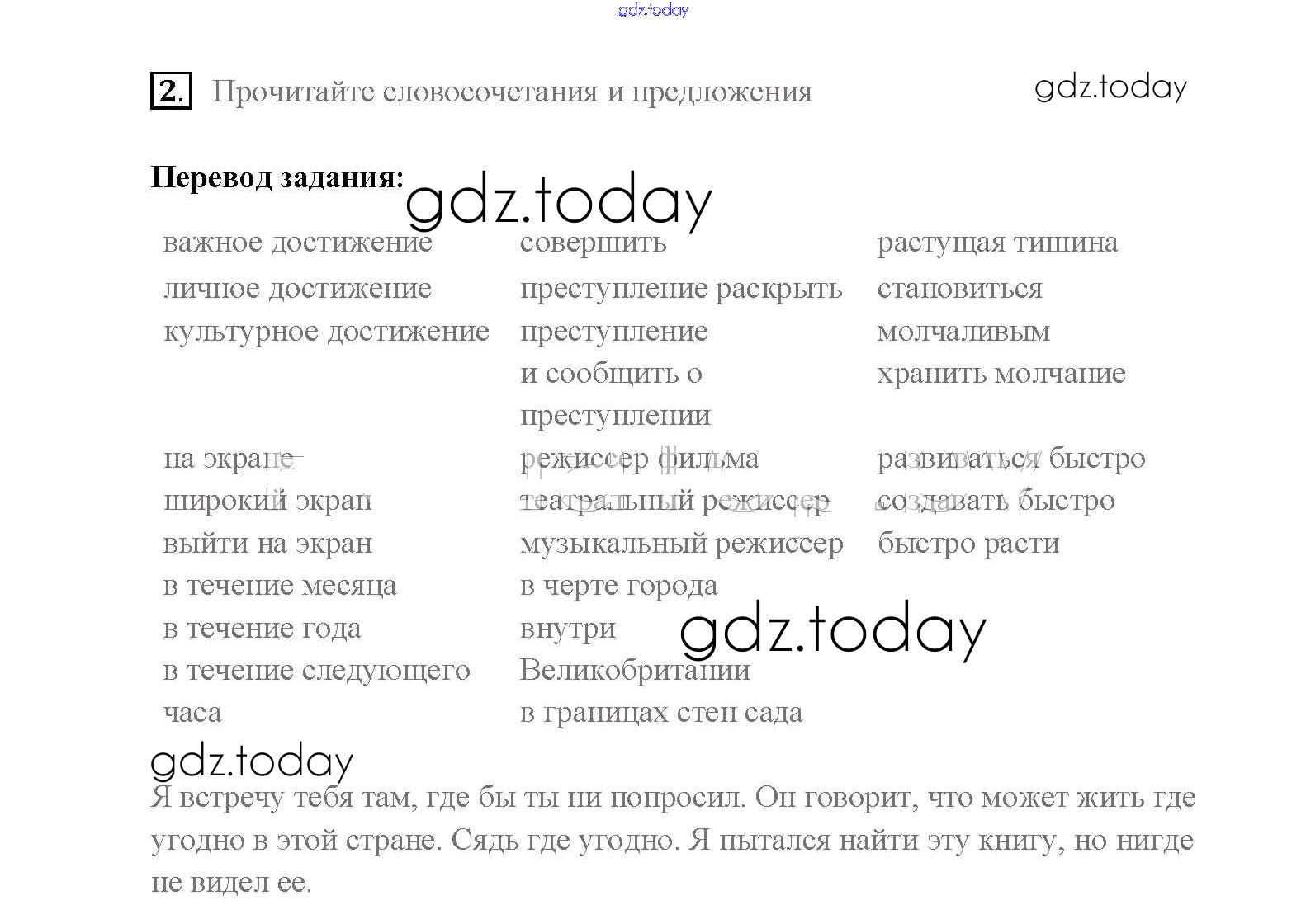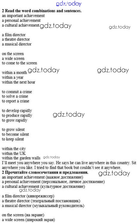 На страницах сайта gdz.today вы найдете учебный и вспомогательный материал, направленный на улучшения знаний школьной программы. ГДЗ - онлайн мир знаний Step 2 Решение к Unit 3. Performing arts: cinema 2 Учебнику по Английскому языку для 8 класса Афанасьева, Михеева Дрофа Rainbow 2016