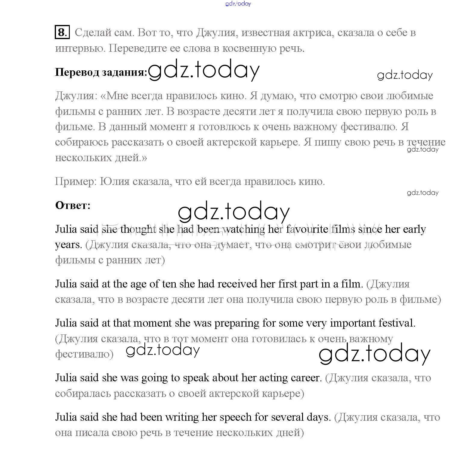 На страницах сайта gdz.today вы найдете учебный и вспомогательный материал, направленный на улучшения знаний школьной программы. ГДЗ - онлайн мир знаний Step 2 Решение к Unit 3. Performing arts: cinema 8 Учебнику по Английскому языку для 8 класса Афанасьева, Михеева Дрофа Rainbow 2016