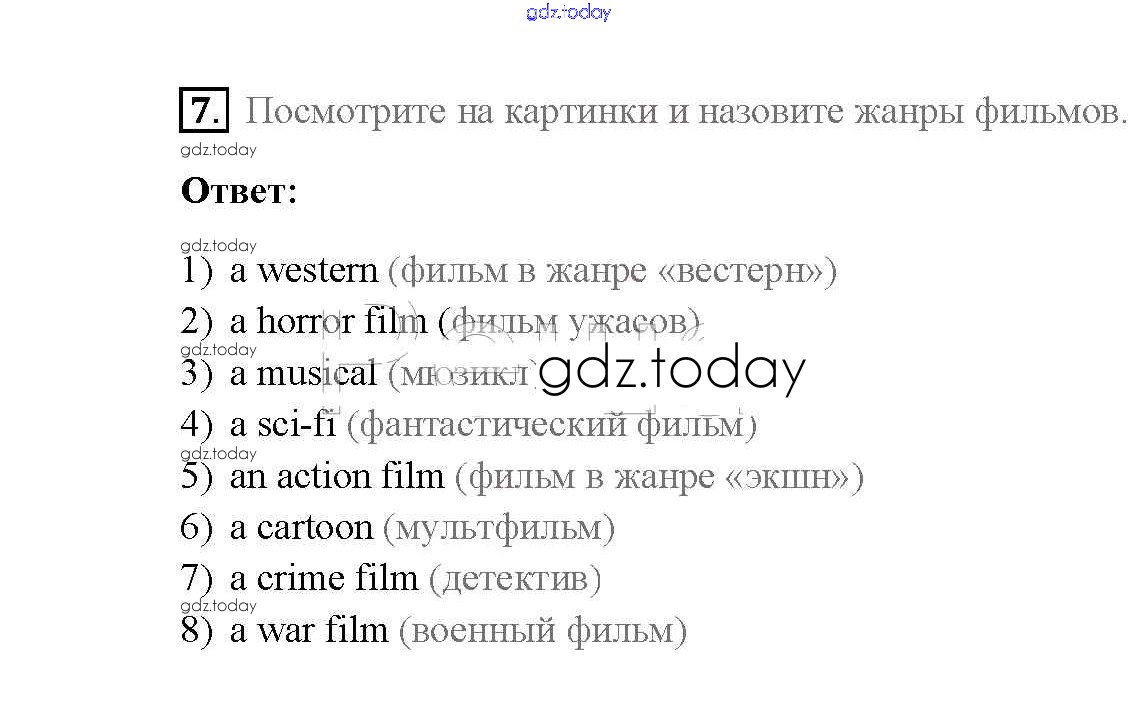 На страницах сайта gdz.today вы найдете учебный и вспомогательный материал, направленный на улучшения знаний школьной программы. ГДЗ - онлайн мир знаний Step 4 Решение к Unit 3. Performing arts: cinema 7 Учебнику по Английскому языку для 8 класса Афанасьева, Михеева Дрофа Rainbow 2016