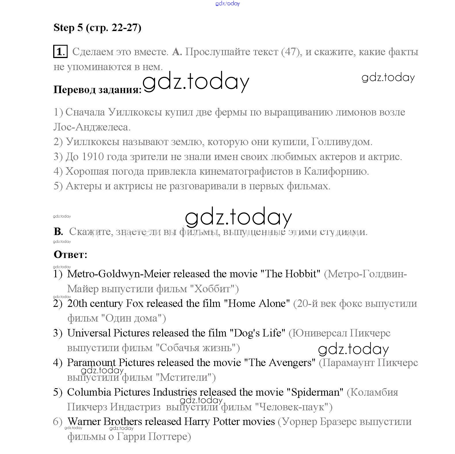 На страницах сайта gdz.today вы найдете учебный и вспомогательный материал, направленный на улучшения знаний школьной программы. ГДЗ - онлайн мир знаний Step 5 Решение к Unit 3. Performing arts: cinema 1 Учебнику по Английскому языку для 8 класса Афанасьева, Михеева Дрофа Rainbow 2016