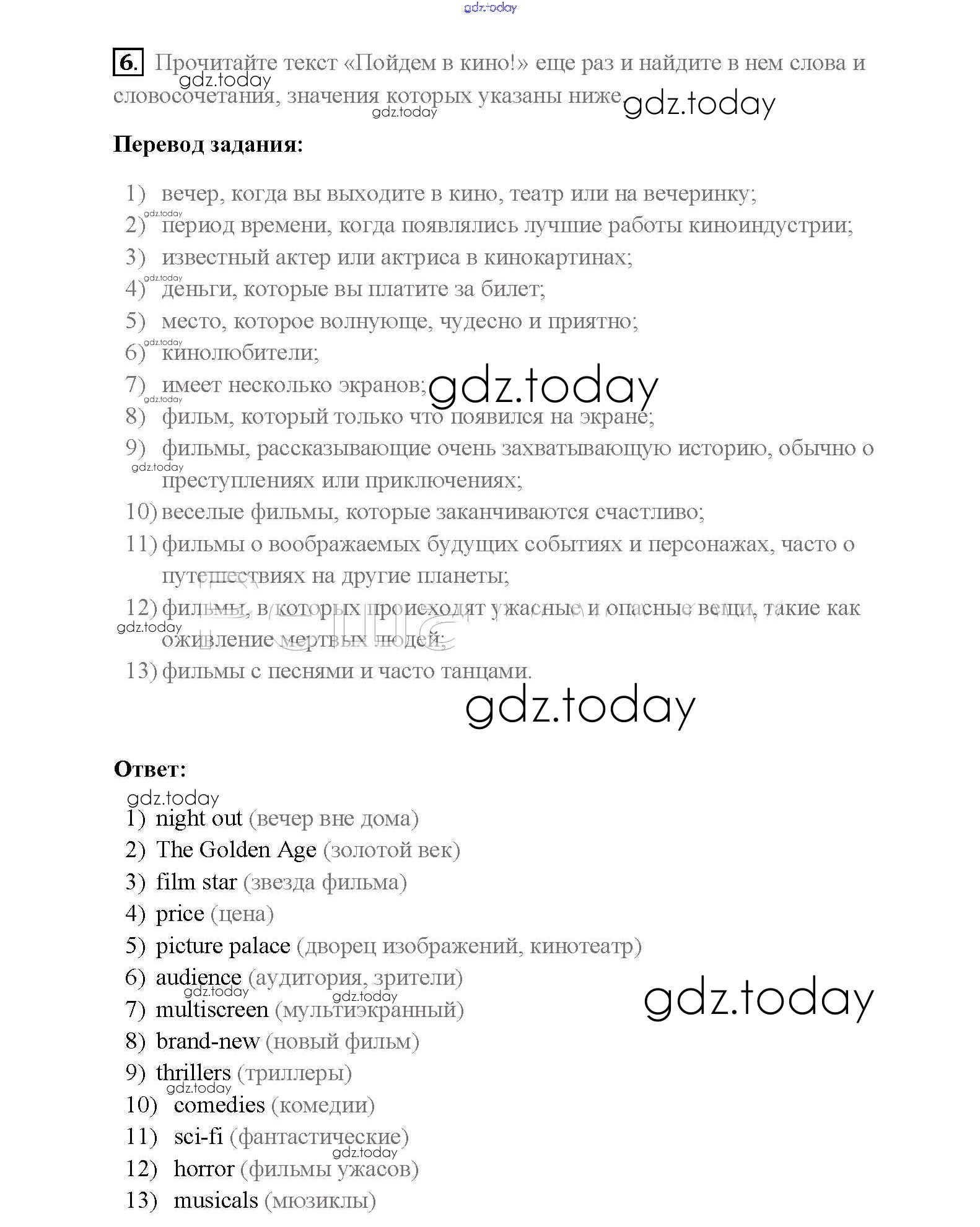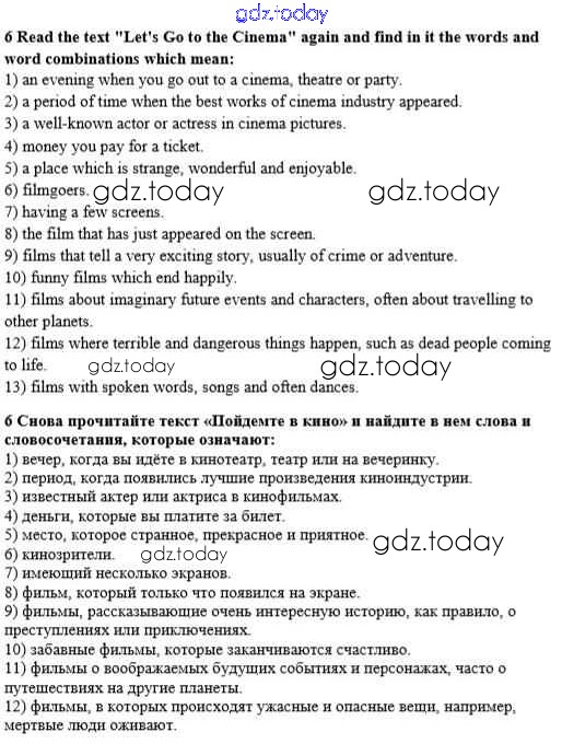 На страницах сайта gdz.today вы найдете учебный и вспомогательный материал, направленный на улучшения знаний школьной программы. ГДЗ - онлайн мир знаний Step 6 Решение к Unit 3. Performing arts: cinema 6 Учебнику по Английскому языку для 8 класса Афанасьева, Михеева Дрофа Rainbow 2016