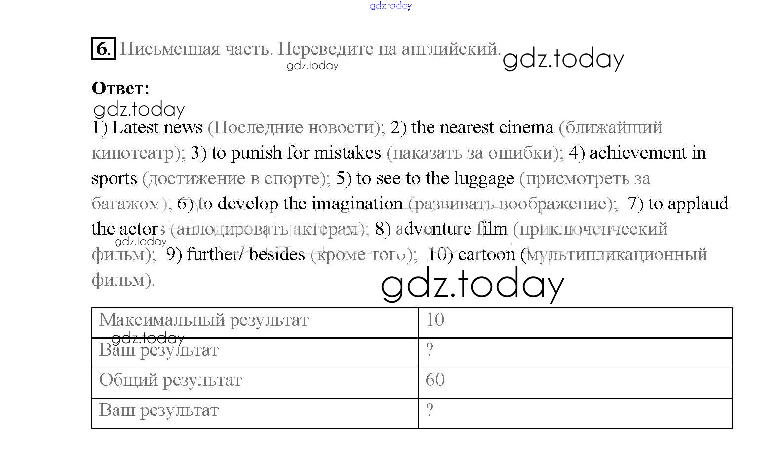 На страницах сайта gdz.today вы найдете учебный и вспомогательный материал, направленный на улучшения знаний школьной программы. ГДЗ - онлайн мир знаний Step 10 Решение к Unit 3. Performing arts: cinema 6 Учебнику по Английскому языку для 8 класса Афанасьева, Михеева Дрофа Rainbow 2016