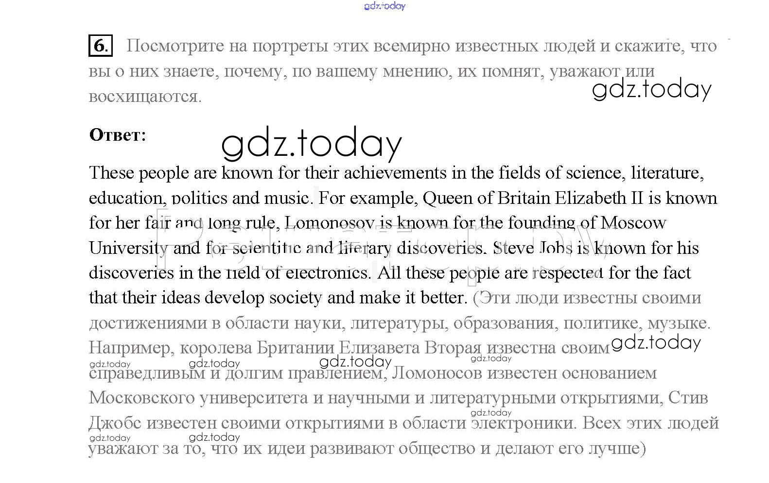 На страницах сайта gdz.today вы найдете учебный и вспомогательный материал, направленный на улучшения знаний школьной программы. ГДЗ - онлайн мир знаний Step 9 Решение к Unit 4. The whole world knows them 6 Учебнику по Английскому языку для 8 класса Афанасьева, Михеева Дрофа Rainbow 2016
