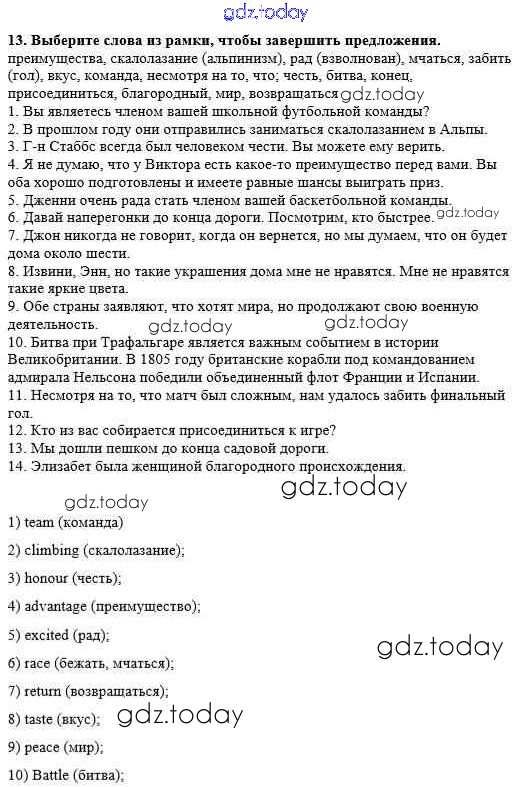 Ответы к Решение к Unit 1. Sport and outdoor activities 13 Рабочей тетради по Английскому языку для 8 класса Афанасьева, Михеева Дрофа Rainbow 2016
