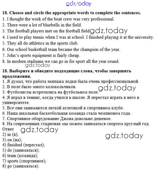 Ответы к Решение к Unit 1. Sport and outdoor activities 18 Рабочей тетради по Английскому языку для 8 класса Афанасьева, Михеева Дрофа Rainbow 2016