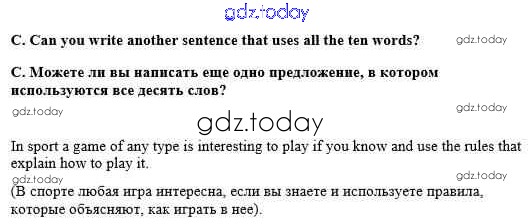 На страницах сайта gdz.today вы найдете учебный и вспомогательный материал, направленный на улучшения знаний школьной программы. ГДЗ - онлайн мир знаний Решение к Unit 1. Sport and outdoor activities C Рабочей тетради по Английскому языку для 8 класса Афанасьева, Михеева Дрофа Rainbow 2016