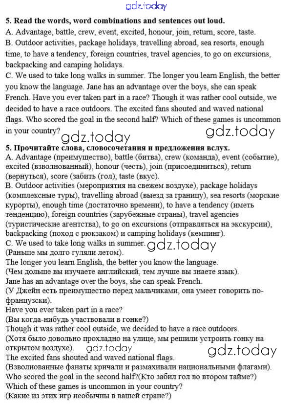На страницах сайта gdz.today вы найдете учебный и вспомогательный материал, направленный на улучшения знаний школьной программы. ГДЗ - онлайн мир знаний Решение к Unit 1. Sport and outdoor activities 5 Рабочей тетради по Английскому языку для 8 класса Афанасьева, Михеева Дрофа Rainbow 2016