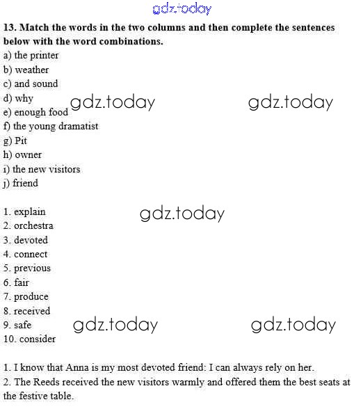 На страницах сайта gdz.today вы найдете учебный и вспомогательный материал, направленный на улучшения знаний школьной программы. ГДЗ - онлайн мир знаний Решение к Unit 2. Performing arts: theatre 13 Рабочей тетради по Английскому языку для 8 класса Афанасьева, Михеева Дрофа Rainbow 2016