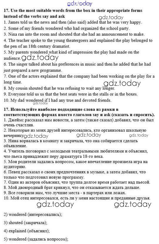 Ответы к Решение к Unit 2. Performing arts: theatre 17 Рабочей тетради по Английскому языку для 8 класса Афанасьева, Михеева Дрофа Rainbow 2016