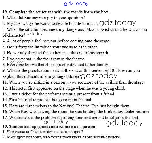 Ответы к Решение к Unit 2. Performing arts: theatre 19 Рабочей тетради по Английскому языку для 8 класса Афанасьева, Михеева Дрофа Rainbow 2016