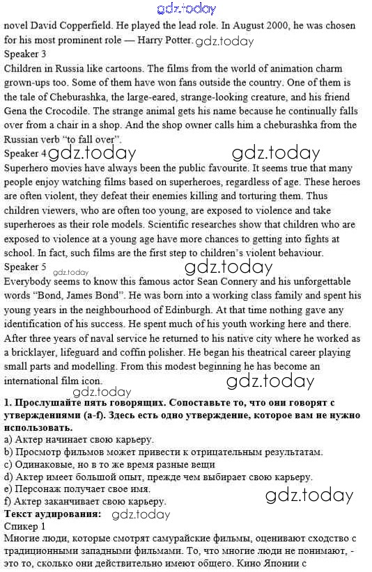 Ответы к Решение к Unit 3. Performing arts: cinema 1 Рабочей тетради по Английскому языку для 8 класса Афанасьева, Михеева Дрофа Rainbow 2016