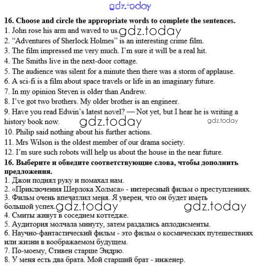 Ответы к Решение к Unit 3. Performing arts: cinema 16 Рабочей тетради по Английскому языку для 8 класса Афанасьева, Михеева Дрофа Rainbow 2016