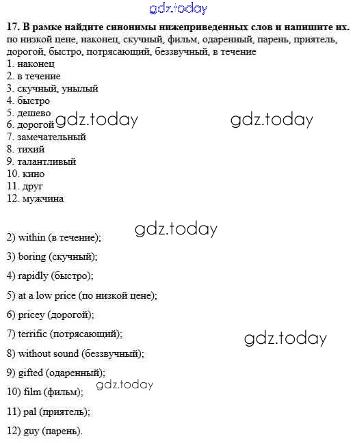 Ответы к Решение к Unit 3. Performing arts: cinema 17 Рабочей тетради по Английскому языку для 8 класса Афанасьева, Михеева Дрофа Rainbow 2016