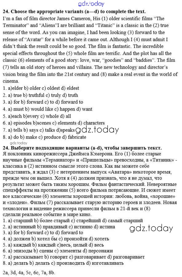 Ответы к Решение к Unit 3. Performing arts: cinema 24 Рабочей тетради по Английскому языку для 8 класса Афанасьева, Михеева Дрофа Rainbow 2016