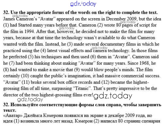 Ответы к Решение к Unit 3. Performing arts: cinema 32 Рабочей тетради по Английскому языку для 8 класса Афанасьева, Михеева Дрофа Rainbow 2016