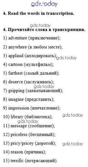 На страницах сайта gdz.today вы найдете учебный и вспомогательный материал, направленный на улучшения знаний школьной программы. ГДЗ - онлайн мир знаний Решение к Unit 3. Performing arts: cinema 4 Рабочей тетради по Английскому языку для 8 класса Афанасьева, Михеева Дрофа Rainbow 2016