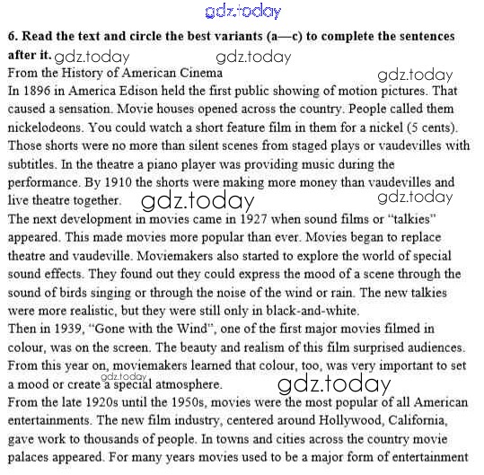 На страницах сайта gdz.today вы найдете учебный и вспомогательный материал, направленный на улучшения знаний школьной программы. ГДЗ - онлайн мир знаний Решение к Unit 3. Performing arts: cinema 6 Рабочей тетради по Английскому языку для 8 класса Афанасьева, Михеева Дрофа Rainbow 2016