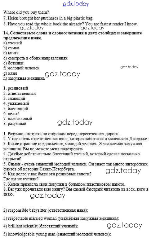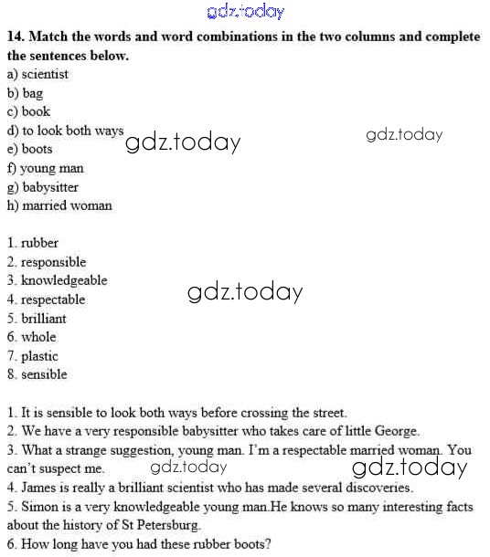 На страницах сайта gdz.today вы найдете учебный и вспомогательный материал, направленный на улучшения знаний школьной программы. ГДЗ - онлайн мир знаний Решение к Unit 4. The whole world knows them 14 Рабочей тетради по Английскому языку для 8 класса Афанасьева, Михеева Дрофа Rainbow 2016