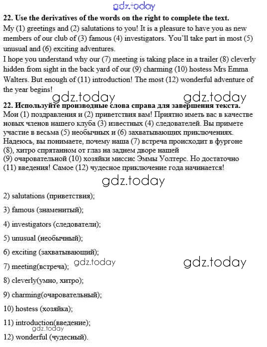 На страницах сайта gdz.today вы найдете учебный и вспомогательный материал, направленный на улучшения знаний школьной программы. ГДЗ - онлайн мир знаний Решение к Unit 4. The whole world knows them 22 Рабочей тетради по Английскому языку для 8 класса Афанасьева, Михеева Дрофа Rainbow 2016