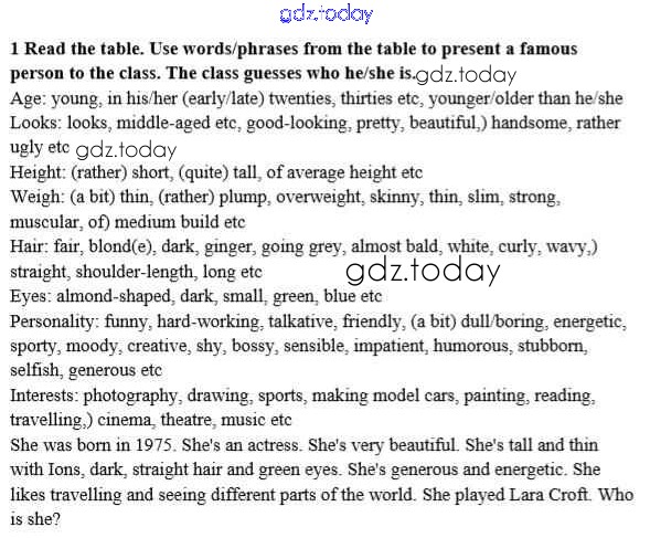 На страницах сайта gdz.today вы найдете учебный и вспомогательный материал, направленный на улучшения знаний школьной программы. ГДЗ - онлайн мир знаний Часть 1d Решение к Module 1 1 Учебнику по Английскому языку для 8 класса Ваулина, Дули Просвещение Spotlight 2015