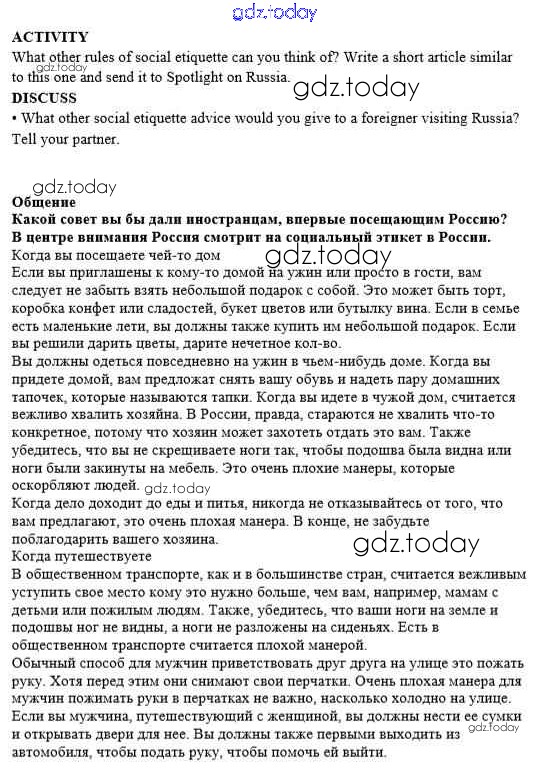 На страницах сайта gdz.today вы найдете учебный и вспомогательный материал, направленный на улучшения знаний школьной программы. ГДЗ - онлайн мир знаний Решение к Spotlight on Russia (страницы) 3 Учебнику по Английскому языку для 8 класса Ваулина, Дули Просвещение Spotlight 2015