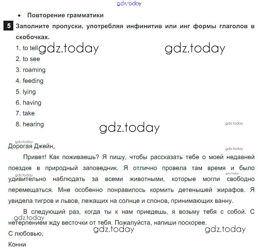 На страницах сайта gdz.today вы найдете учебный и вспомогательный материал, направленный на улучшения знаний школьной программы. ГДЗ - онлайн мир знаний Часть 5f Решение к Module 5 5 Учебнику по Английскому языку для 8 класса Ваулина, Дули Просвещение Spotlight 2015