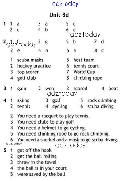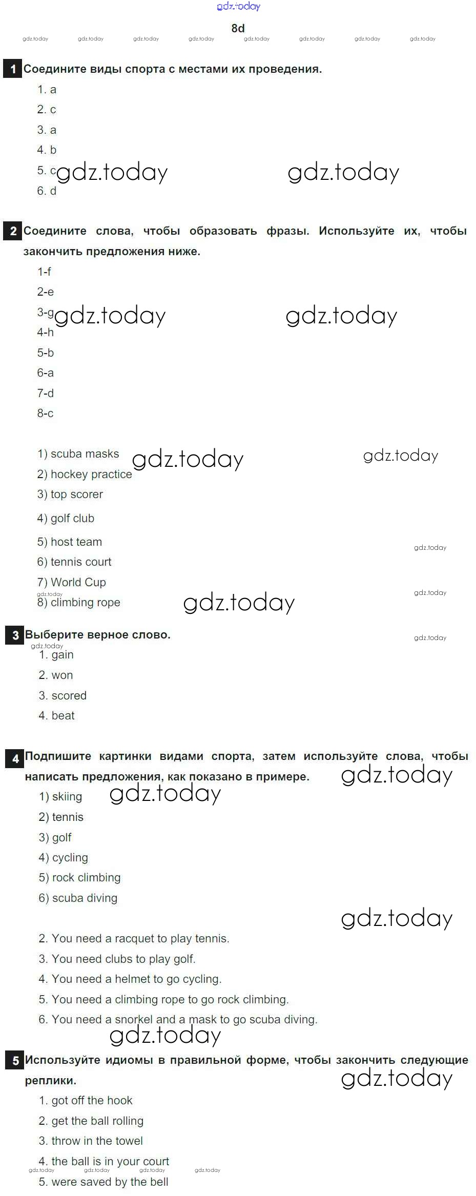 На страницах сайта gdz.today вы найдете учебный и вспомогательный материал, направленный на улучшения знаний школьной программы. ГДЗ - онлайн мир знаний Решение к Module 8 8d Рабочей тетради по Английскому языку для 8 класса Ваулина, Дули Просвещение Spotlight 2016