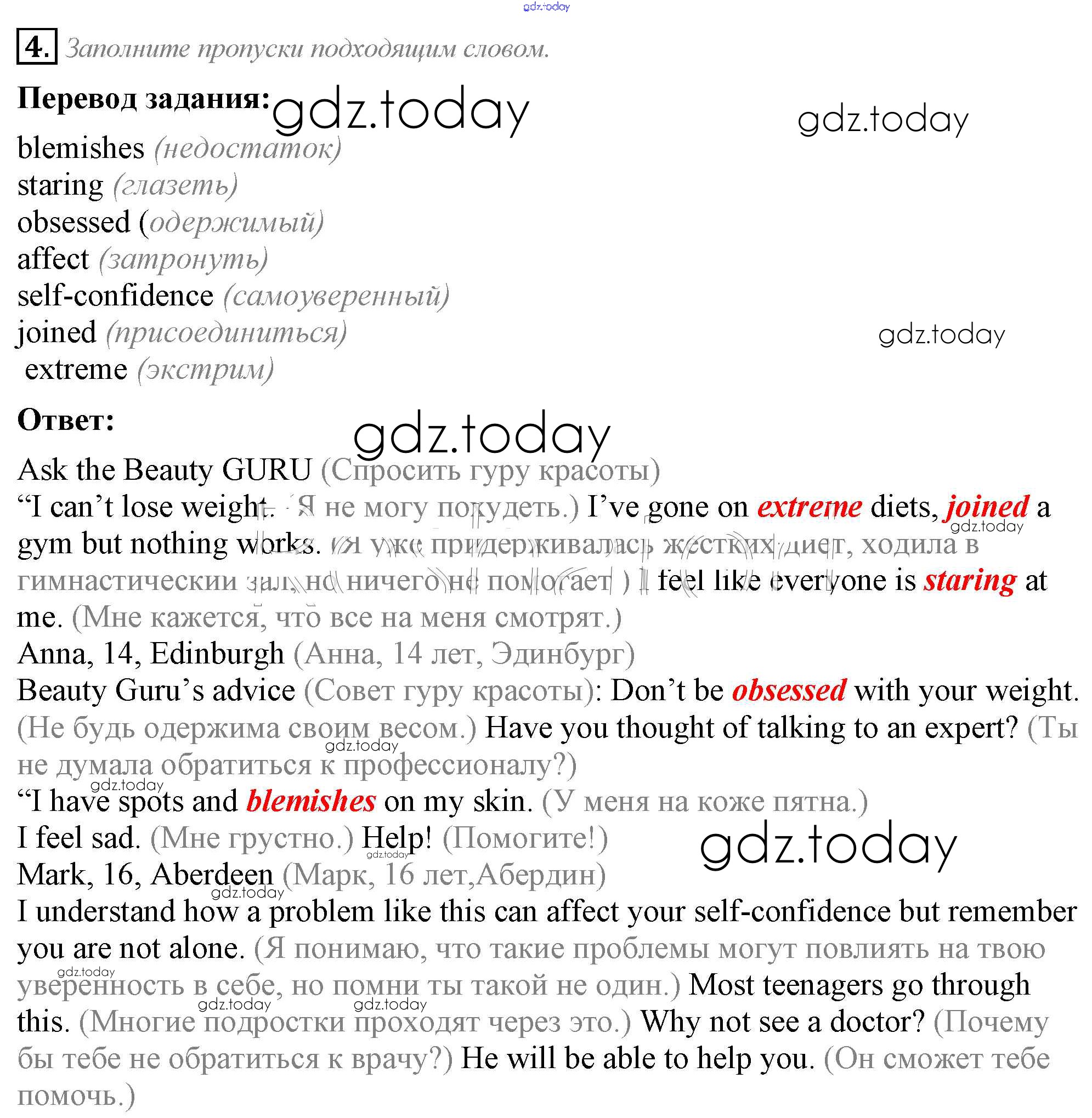 На страницах сайта gdz.today вы найдете учебный и вспомогательный материал, направленный на улучшения знаний школьной программы. ГДЗ - онлайн мир знаний Часть 4h Решение к Module 4 4 Рабочей тетради по Английскому языку для 8 класса Ваулина, Дули Просвещение Spotlight 2016