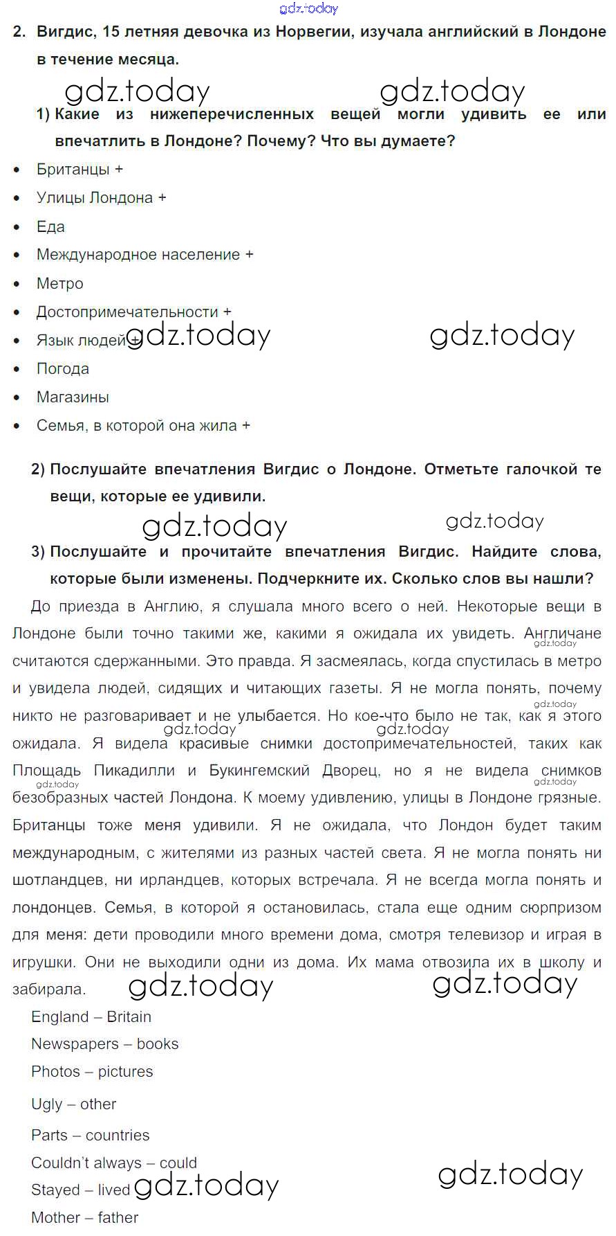 На страницах сайта gdz.today вы найдете учебный и вспомогательный материал, направленный на улучшения знаний школьной программы. ГДЗ - онлайн мир знаний lesson 5 Решение к Unit 1. My country at a glance 2 Учебнику по Английскому языку для 8 класса Кузовлев, Лапа Просвещение 2015