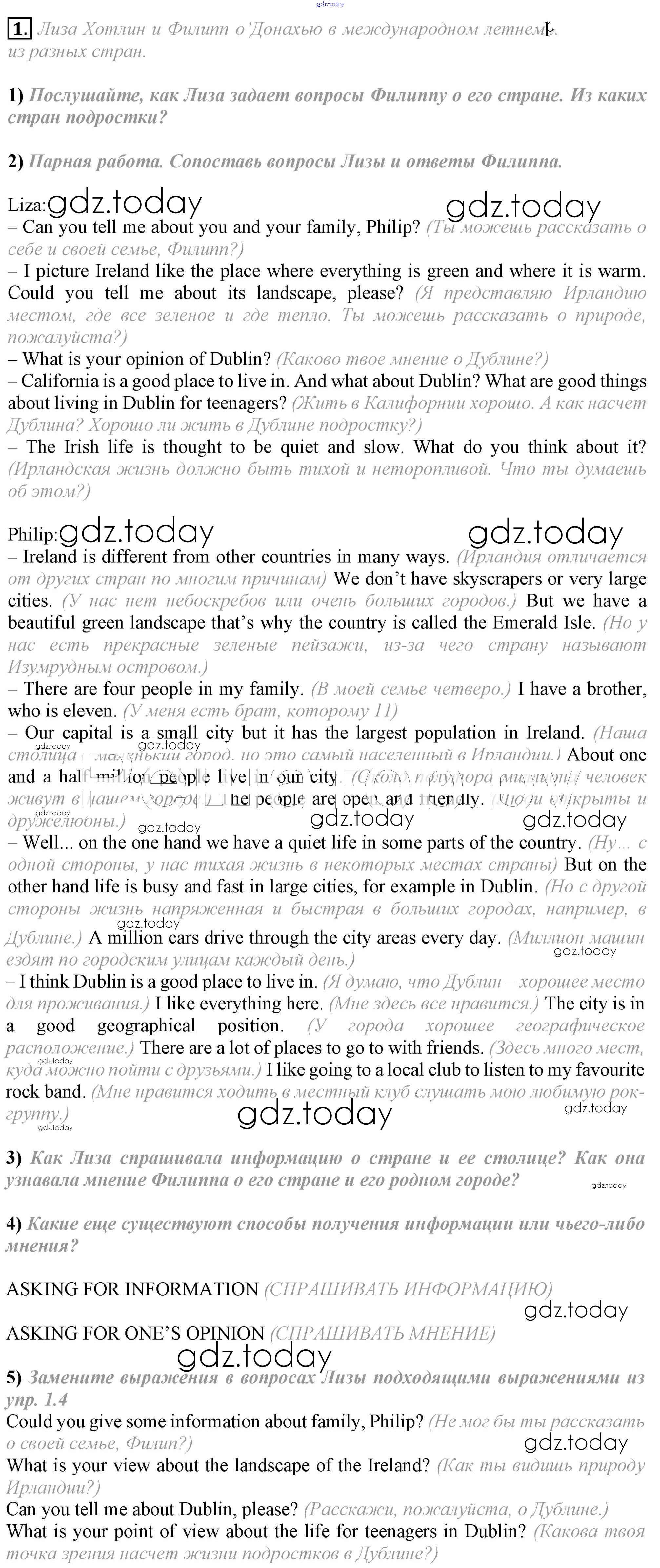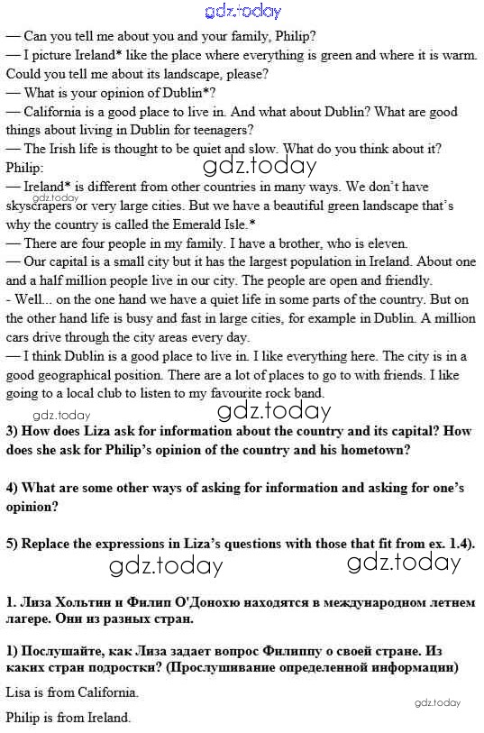Ответы к lesson 7 Решение к Unit 1. My country at a glance 1 Учебнику по Английскому языку для 8 класса Кузовлев, Лапа Просвещение 2015