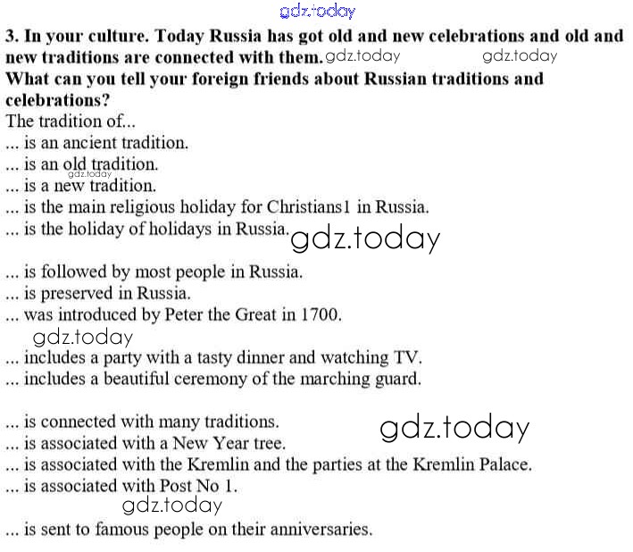 На страницах сайта gdz.today вы найдете учебный и вспомогательный материал, направленный на улучшения знаний школьной программы. ГДЗ - онлайн мир знаний lesson 1 Решение к Unit 2. Is your country a land of traditions? 3 Учебнику по Английскому языку для 8 класса Кузовлев, Лапа Просвещение 2015