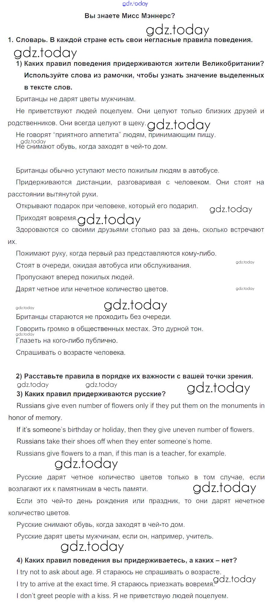 На страницах сайта gdz.today вы найдете учебный и вспомогательный материал, направленный на улучшения знаний школьной программы. ГДЗ - онлайн мир знаний lesson 2 Решение к Unit 2. Is your country a land of traditions? 1 Учебнику по Английскому языку для 8 класса Кузовлев, Лапа Просвещение 2015