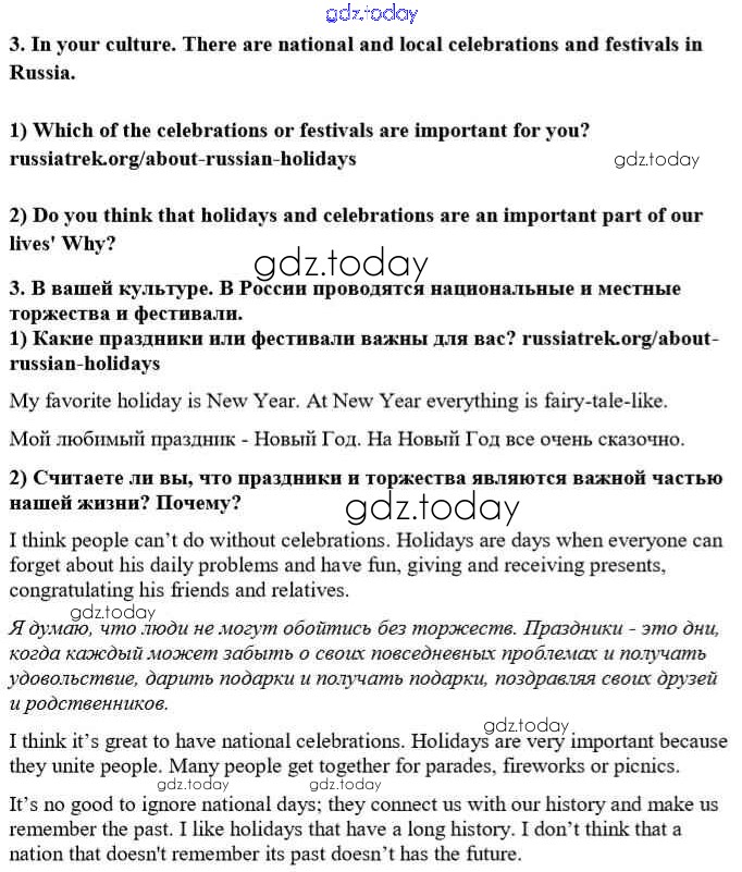 На страницах сайта gdz.today вы найдете учебный и вспомогательный материал, направленный на улучшения знаний школьной программы. ГДЗ - онлайн мир знаний lesson 6 Решение к Unit 2. Is your country a land of traditions? 3 Учебнику по Английскому языку для 8 класса Кузовлев, Лапа Просвещение 2015