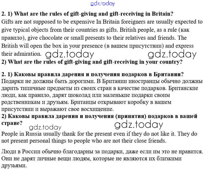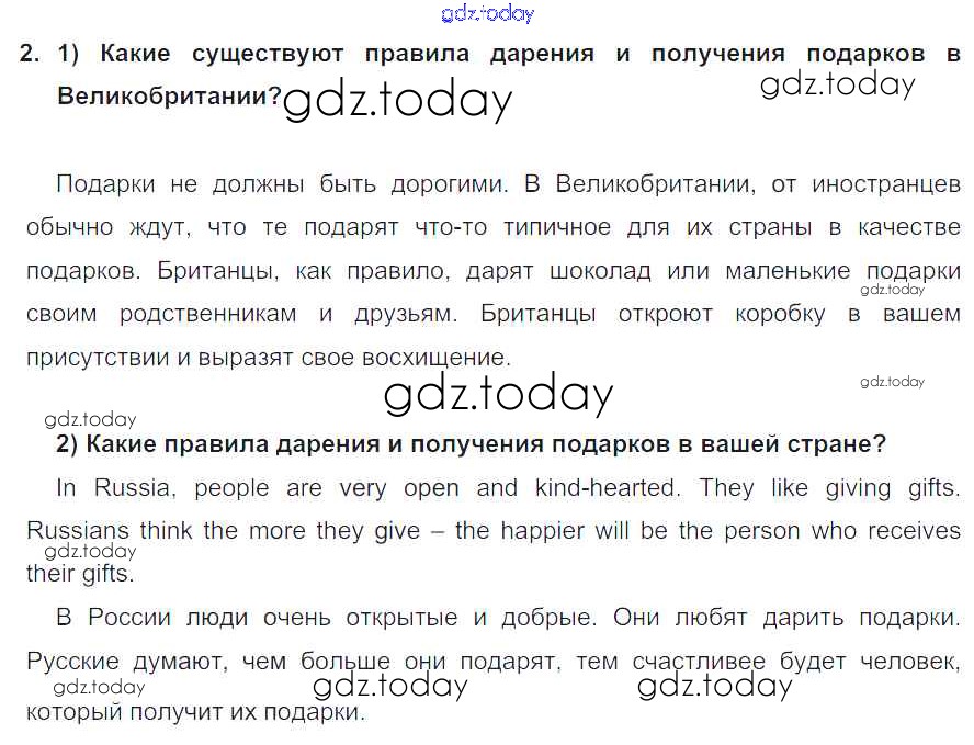 На страницах сайта gdz.today вы найдете учебный и вспомогательный материал, направленный на улучшения знаний школьной программы. ГДЗ - онлайн мир знаний lesson 8 Решение к Unit 2. Is your country a land of traditions? 2 Учебнику по Английскому языку для 8 класса Кузовлев, Лапа Просвещение 2015