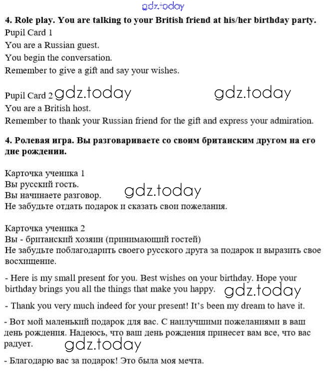 На страницах сайта gdz.today вы найдете учебный и вспомогательный материал, направленный на улучшения знаний школьной программы. ГДЗ - онлайн мир знаний lesson 8 Решение к Unit 2. Is your country a land of traditions? 4 Учебнику по Английскому языку для 8 класса Кузовлев, Лапа Просвещение 2015