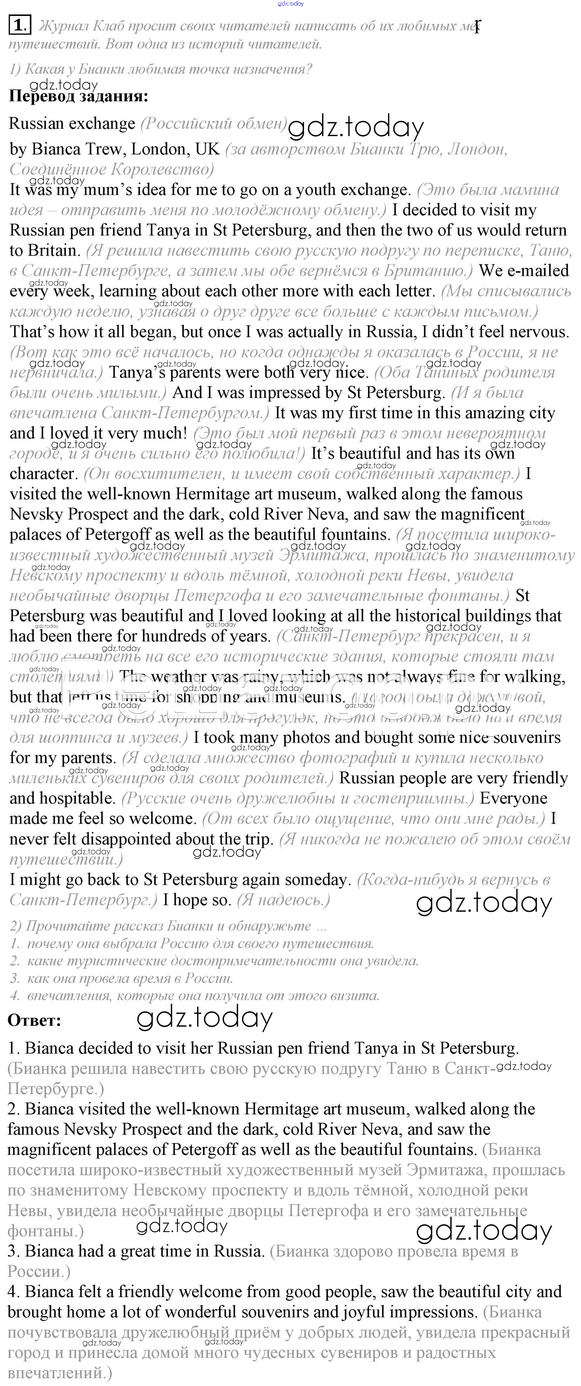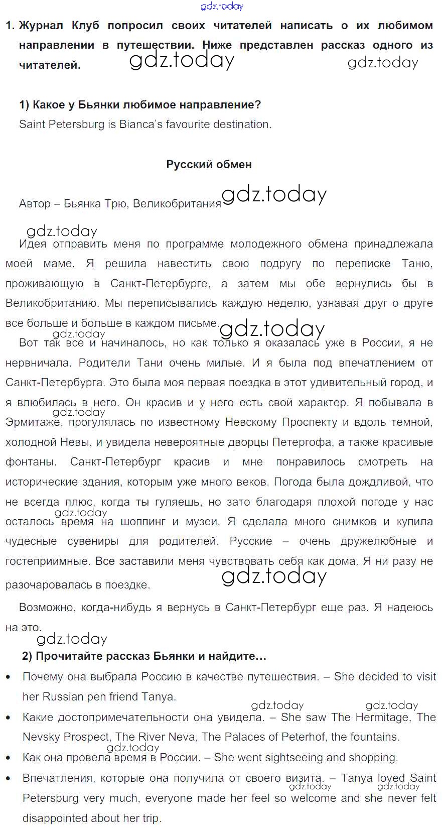 Ответы к lesson 8-9 Решение к Unit 3. Do you like travelling? 1 Учебнику по Английскому языку для 8 класса Кузовлев, Лапа Просвещение 2015