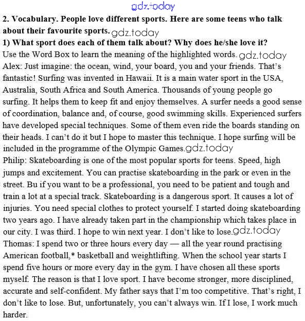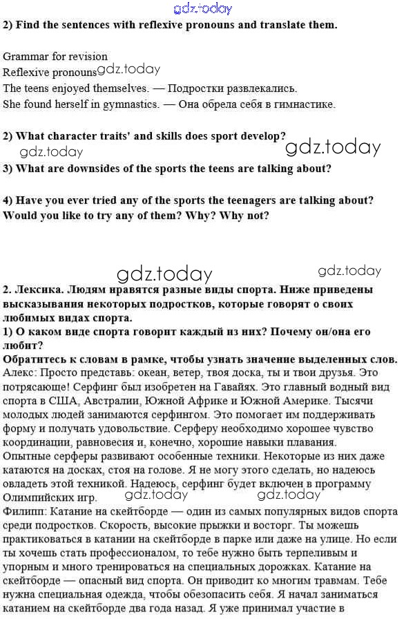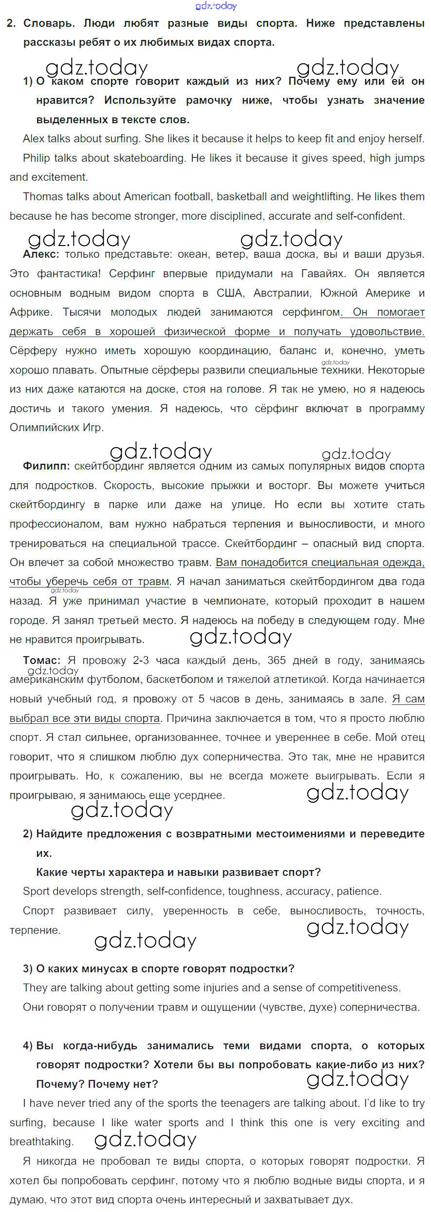 На страницах сайта gdz.today вы найдете учебный и вспомогательный материал, направленный на улучшения знаний школьной программы. ГДЗ - онлайн мир знаний lesson 1 Решение к Unit 4. Are you fond of sport? 2 Учебнику по Английскому языку для 8 класса Кузовлев, Лапа Просвещение 2015