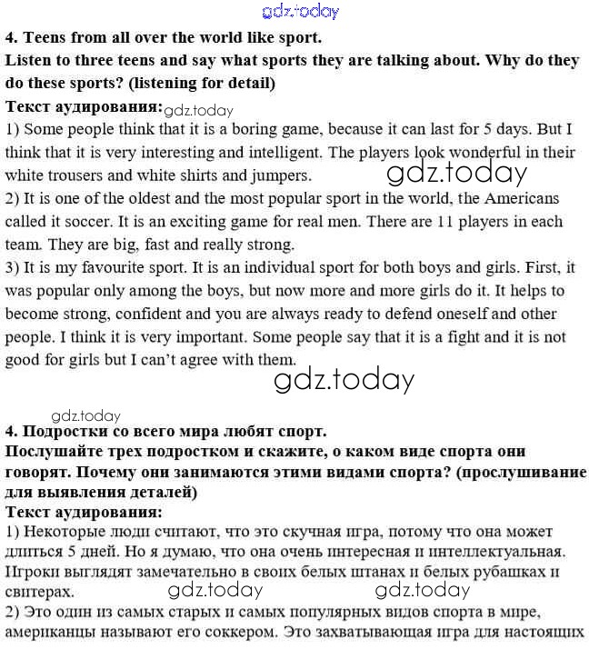 Ответы к lesson 1 Решение к Unit 4. Are you fond of sport? 4 Учебнику по Английскому языку для 8 класса Кузовлев, Лапа Просвещение 2015