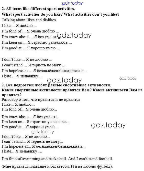 Ответы к lesson 2 Решение к Unit 4. Are you fond of sport? 2 Учебнику по Английскому языку для 8 класса Кузовлев, Лапа Просвещение 2015