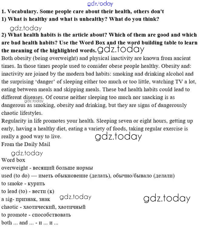 На страницах сайта gdz.today вы найдете учебный и вспомогательный материал, направленный на улучшения знаний школьной программы. ГДЗ - онлайн мир знаний lesson 1 Решение к Unit 5. A healthy living guide 1 Учебнику по Английскому языку для 8 класса Кузовлев, Лапа Просвещение 2015