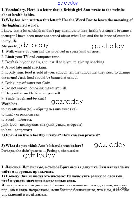 На страницах сайта gdz.today вы найдете учебный и вспомогательный материал, направленный на улучшения знаний школьной программы. ГДЗ - онлайн мир знаний lesson 2 Решение к Unit 5. A healthy living guide 1 Учебнику по Английскому языку для 8 класса Кузовлев, Лапа Просвещение 2015