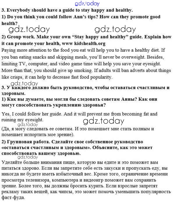 На страницах сайта gdz.today вы найдете учебный и вспомогательный материал, направленный на улучшения знаний школьной программы. ГДЗ - онлайн мир знаний lesson 2 Решение к Unit 5. A healthy living guide 3 Учебнику по Английскому языку для 8 класса Кузовлев, Лапа Просвещение 2015